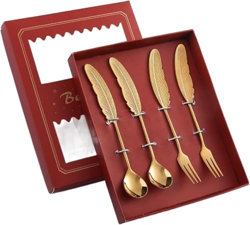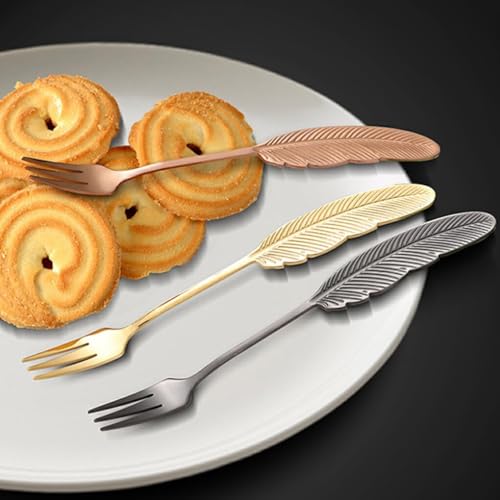 - ✅【تصميم ريشة أنيق】 الطقم يتميز بتصميم ريشة ذهبي فاخر يمنح طاولة التقديم مظهر راقي ومميز، ويجعل الحلويات والفواكه تبدو أكثر جاذبية وأناقة، كما أن الشكل الانسيابي يوفر راحة كبيرة أثناء الاستخدام ويعكس ذوق عالي في اختيار أدوات السفرة، مما يجعل كل مناسبة عائلية أو احتفالية أكثر فخامة وتنظيم ويمنح الضيوف انطباع إيجابي يدوم طويلًا. ✨