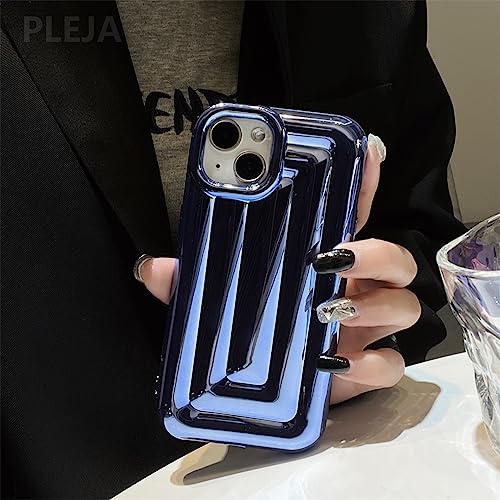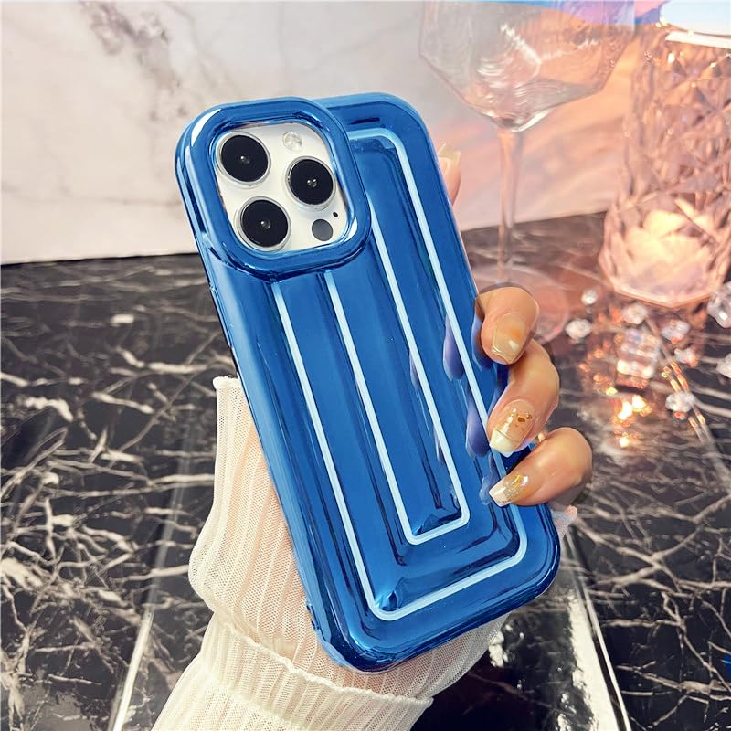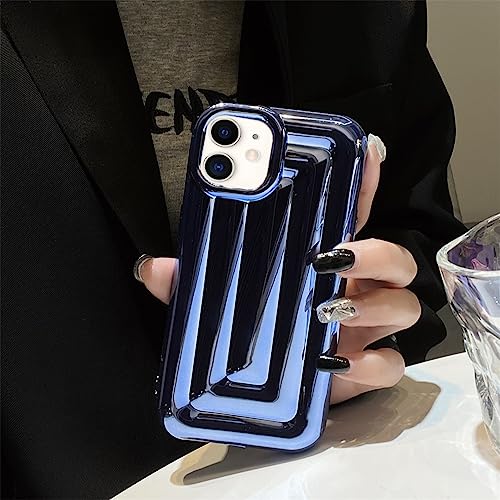 Generic - جراب موبايل فاخر بتصميم مخطط ثلاثي الابعاد مطلي بالكهرباء لموبايل ابل ايفون 12 - برو 6.1 حماية مضاد للصدمات بسيط ستيريو ساطع ازرق البولي بروبلين