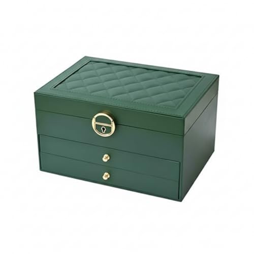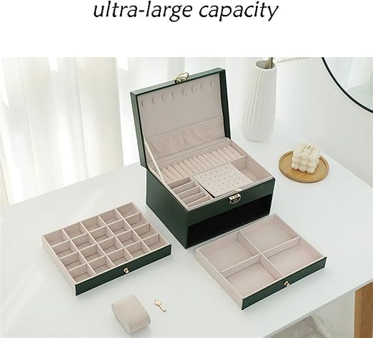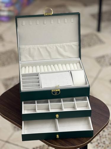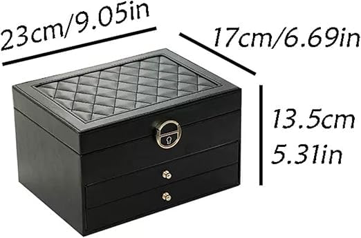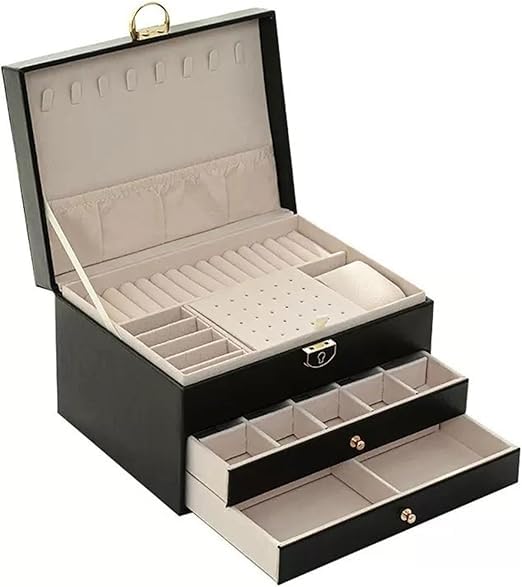 Generic - صندوق مجوهرات فاخر 4 طبقات، جلد صناعي مع بطانة قطيفة، منظم للذهب والساعات والاكسسوارات، تصميم متعدد الأدراج مع قفل محكم (اسود)
