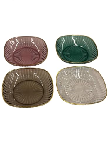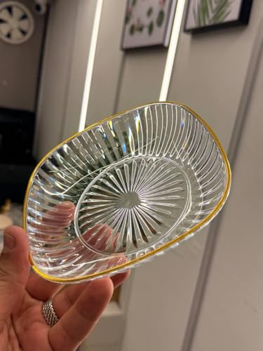 Generic - طبق تقديم أكريليك فاخر بحواف ذهبية، تصميم شعاعي، للحلويات والمكسرات