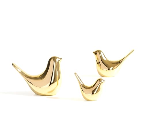 Generic - تماثيل حيوانات فاخرة - ديكورات بورسلين صغيرة ذهبية اللون تتميز بطيور للتصميم الاحتفالي واليومي، مجموعة من 3 قطع
