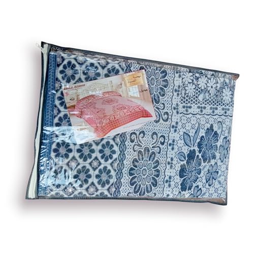 Generic - كوفرتة سرير فاخرة بنمط أزهار عربي، قماش منقوش باللون الأزرق والأبيض، تصميم كلاسيكي مع زخارف نباتية