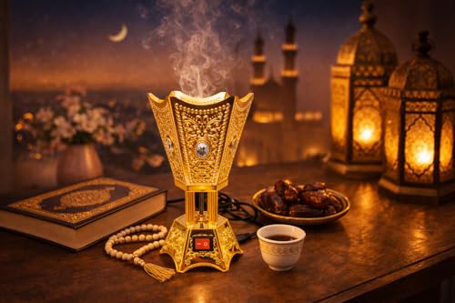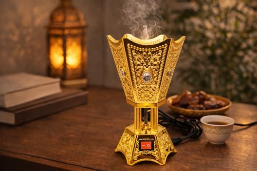 Generic - مبخرة بخور كهربائية عربية فاخرة – تصميم ذهبي أنيق – مناسبة للمنزل، المجالس، والضيافة