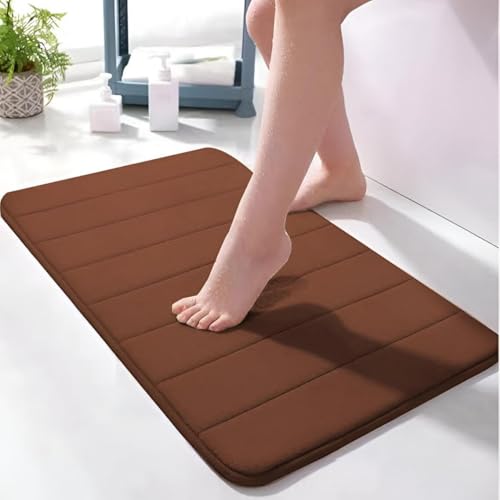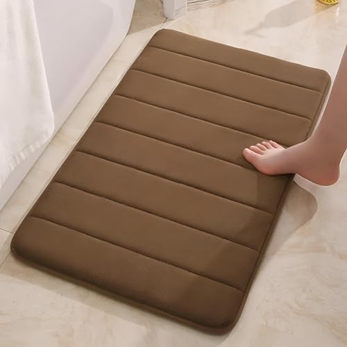 Generic - سجادة حمام من فوم ميموري سميك مع امتصاص للماء، بقاعدة غير قابلة للانزلاق، وقابلة للتنظيف في الغسالة، سريعة الجفاف، 1.47 م × 97 سم، لون بني لأناقة الحمام التي لا تتأثر بمرور الزمن