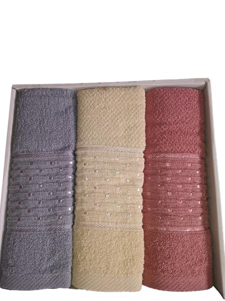 ECIF - مجموعة مناشف حمام فاخرة، قطن ناعم، متعددة الألوان، 60×120 سم، للاستخدام المنزلي والصالونات (كشمير , بيج , رمادي)