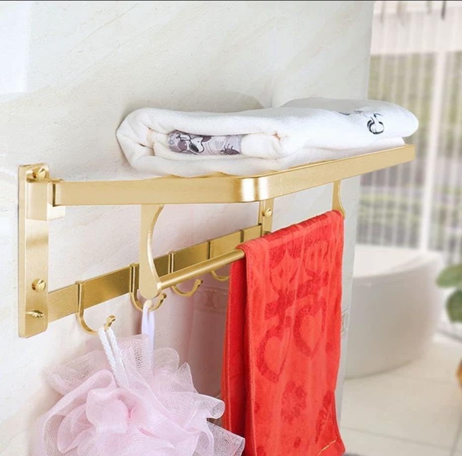 Generic - مجموعة إكسسوارات حمام فاخرة (رف حمام جداري فاخر - لون ذهبي مميز)