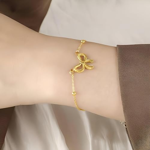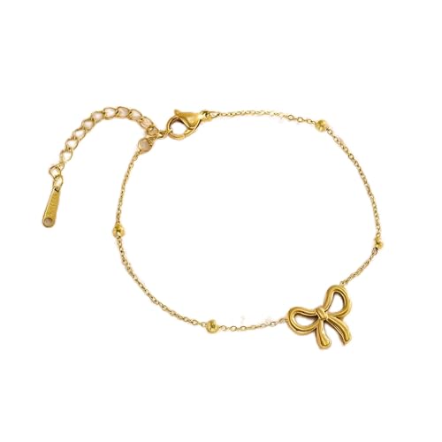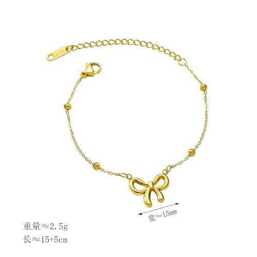Generic - اكسسوار خرز فاخر - سوار سلسلة بفيونكة ذهبية، مشبك لوبستر قابل للتعديل، 15+5 سم، خفيف الوزن 2.5 غرام لاطلالة راقية