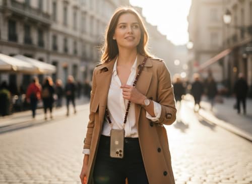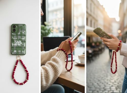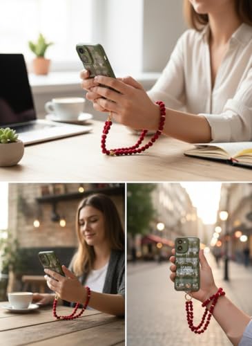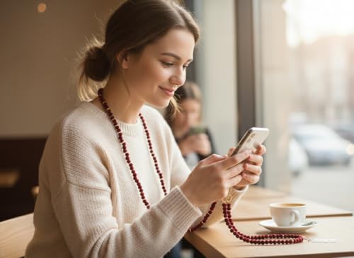 Generic - سلسلة موبايل طويلة من الخرز الفاخر، حبل رقبة أنيق للهاتف الذكي، متوافقة مع جميع الهواتف، بتصميم عصري باللون الأحمر