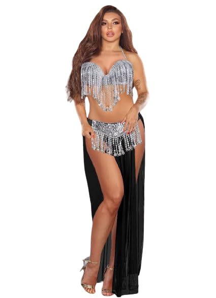 generic - بدلة رقص شرقي فاخرة مصنوعة يدويا بالكامل متعددة الالوان للنساء، مقاس واحد، موديل 973