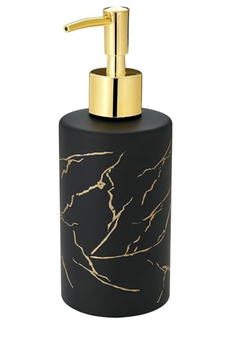 Generic - موزع صابون بنقشة الرخام الأسود مع مضخة ذهبية، اكسسوار حمام من السيراميك لصابون المطبخ وصابون اليدين أو اللوشن