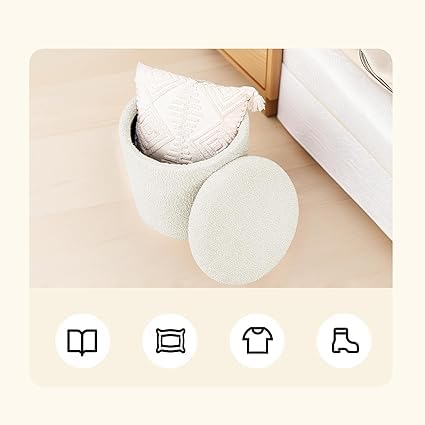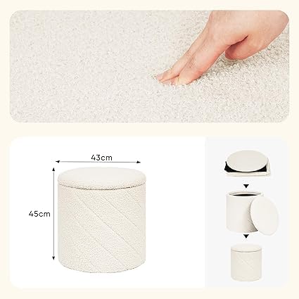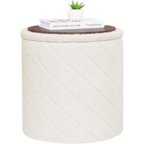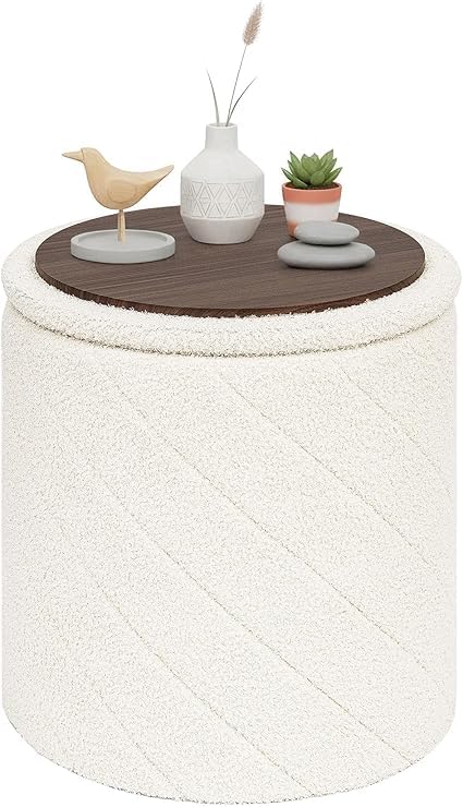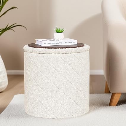 Generic - كرسي بف عثماني دائري بقماش بوكليه فاخر مع سطح خشبي – مزود بمساحة تخزين داخلية – مقعد متعدد الاستخدام وطاولة جانبية لغرفة المعيشة وغرفة النوم – تصميم عصري مريح