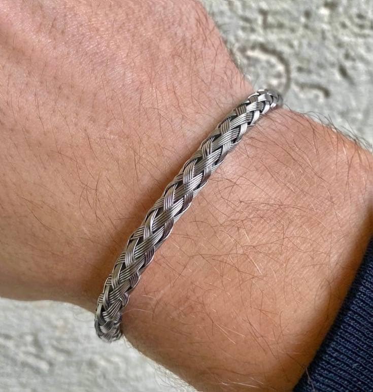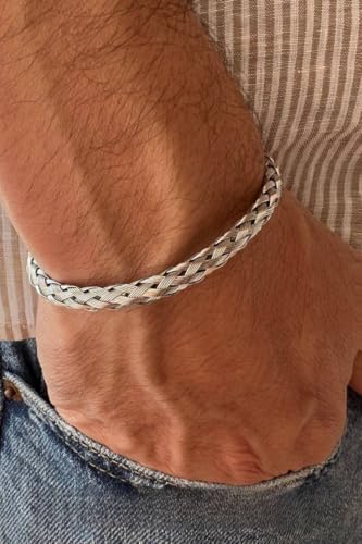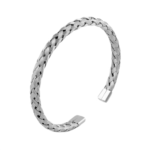 Generic - أساور حلقية عريضة بتصميم مفتوح من التيتانيوم والفولاذ المقاوم للصدأ قابلة للتعديل للرجال والنساء، فاخرة لون فضي