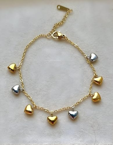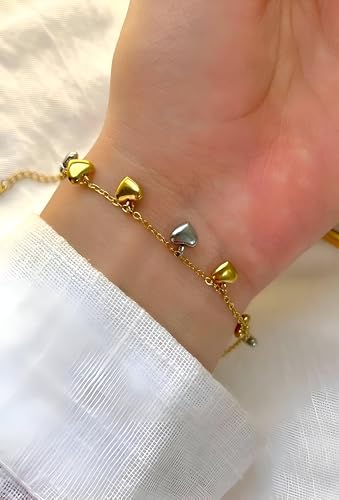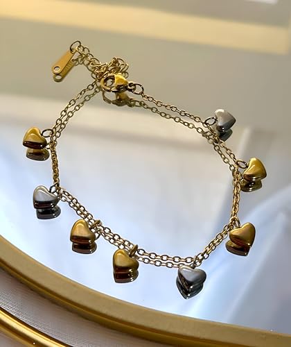 Generic - سوار سلسلة فاخر - قلوب بلونين مع مشبك لوبستر قابل للتعديل للاستخدام اليومي او المناسبات الخاصة
