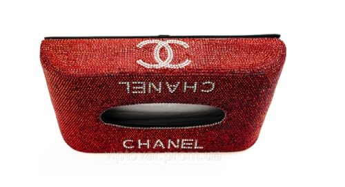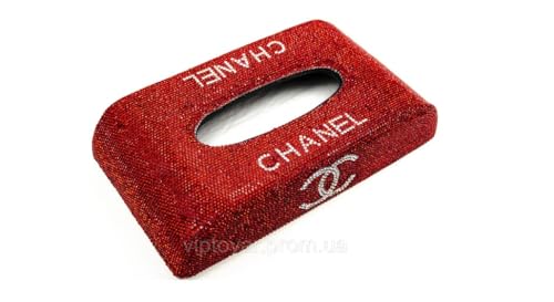 - تصميم فاخر: علبة مناديل مرصعة بالكريستالات اللامعة باللون الأحمر مع شعار شانيل، تضيف لمسة من الفخامة والأناقة لسيارتك أو منزلك