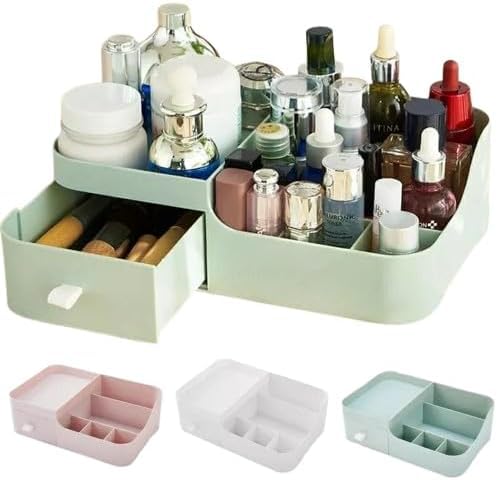 - تنظيم سهل لروتين الجمال الخاص بك: حافظي على جميع مستحضرات التجميل والفرش والعناية بالبشرة مرتبة بأناقة في مساحة واحدة مريحة. قل وداعًا للأدراج الفوضوية والوقت الضائع في البحث عن منتجاتك المفضلة، مما يجعل كل صباح أسهل وأكثر متعة. 2. مساحات تخزين متعددة لتوفير أقصى قدر من الوظائف: مصممة لتخزين أحمر الشفاه وكريم الأساس والباليت والفرش والأمصال والمجوهرات الصغيرة، كل منتج له مكانه الخاص. يمكنك الوصول إلى أساسيات التجميل الخاصة بك على الفور مع الحفاظ على منضدة الزينة نظيفة ومنظمة.