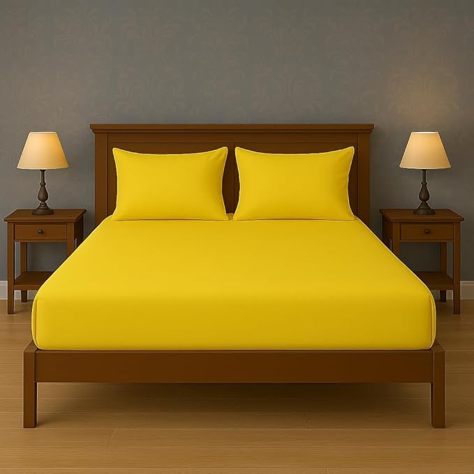 - المواد: بياضات سرير من مزيج القطن الفاخر توفر الراحة والمتانة المثلى مع الحفاظ على لونها الأصفر النابض بالحياة من خلال غسلات متعددة