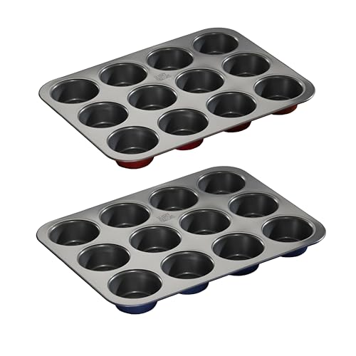 Generic - صينية مافن من الستيل الكربوني الفاخر، 12 فتحة، طلاء غير لاصق عالي الجودة لخبز الكب كيك والحلويات بسهولة