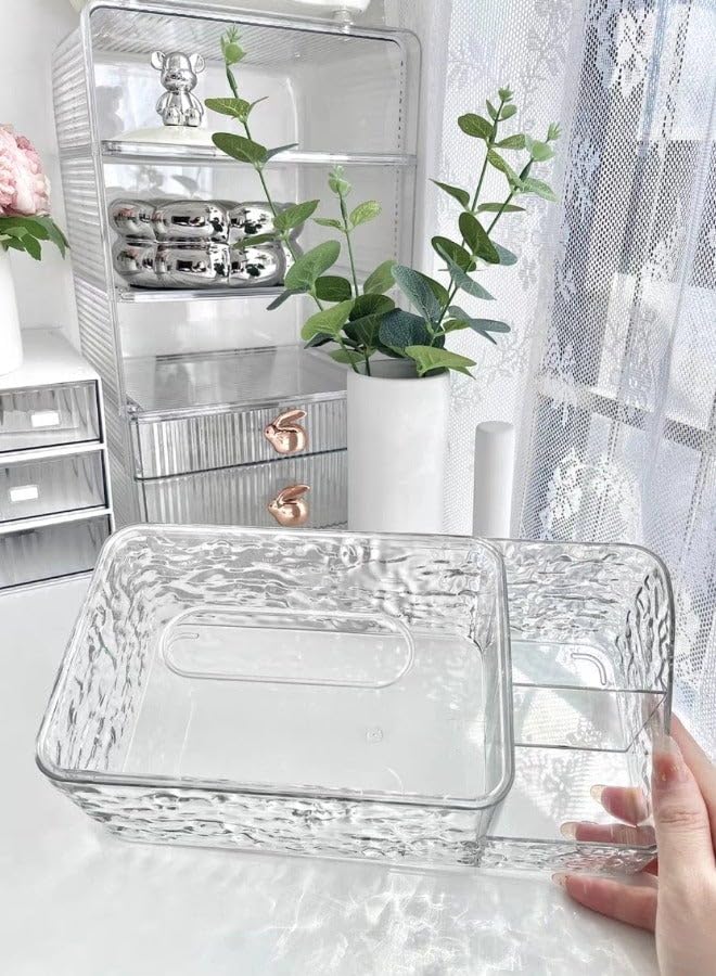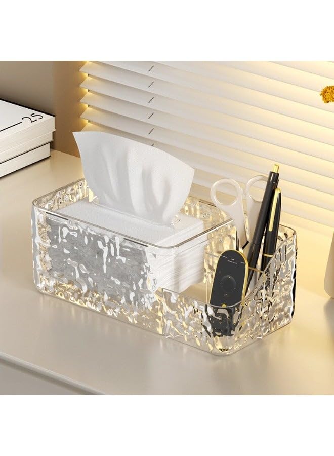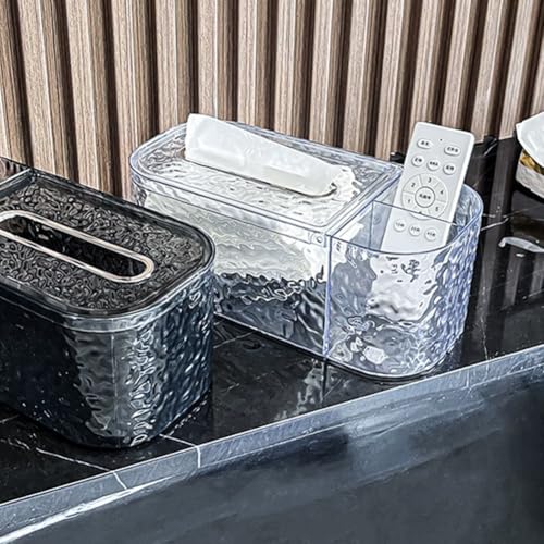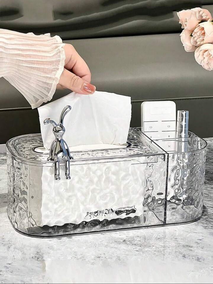 AREXOL - صندوق مناديل من الأكريليك كريستالي بتصميم أرنب مع 3 مساحات تخزين للمناديل وأجهزة التحكم عن بعد والاكسسوارات، منظم منزلي أنيق