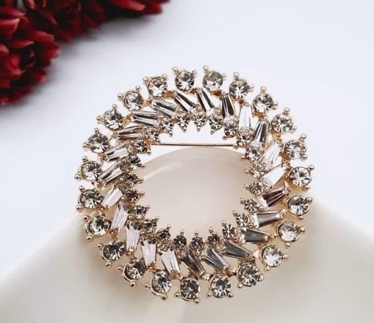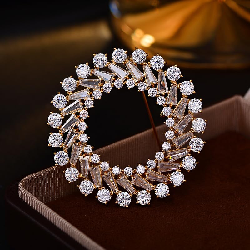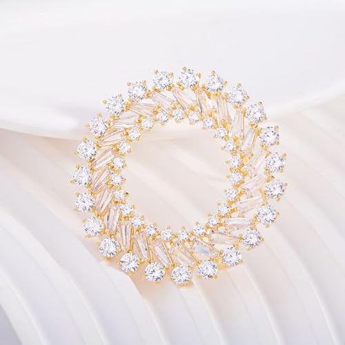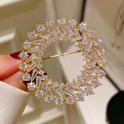 Generic - دبوس بروش كريستال فاخر، تصميم زهرة، مطلي بالذهبي مع كريستال شفاف