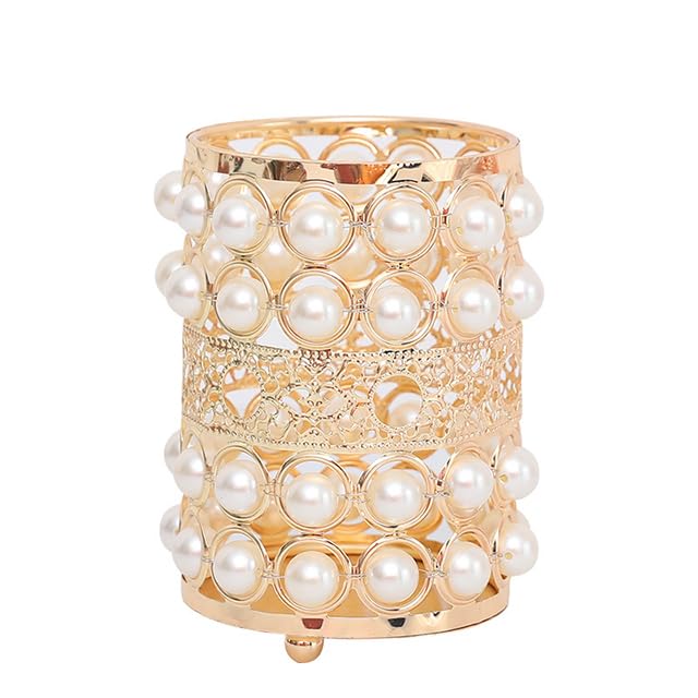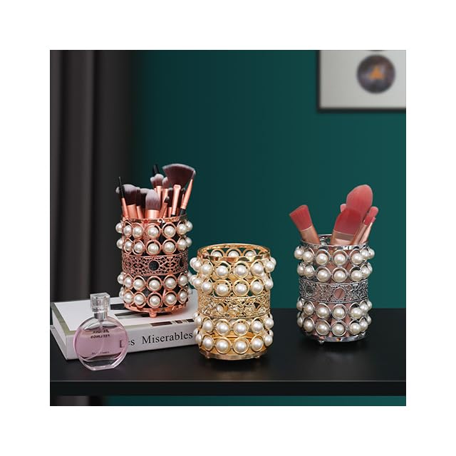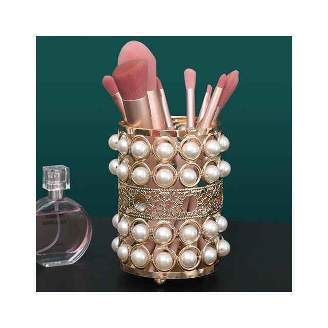 Generic - منظم وحامل فرش مكياج او اقلام كريستالي فاخر – صناعة يدوية بتصميم فاخر مزينة باللؤلؤى لتخزين مستحضرات التجميل وأقلام ديكور أنيق للطاولة