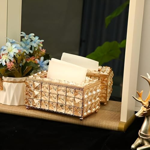 Generic - علبة مناديل كريستالي فاخر - تصميم رائع يجمع بين الأناقة والوظائف، مثالي كحامل لمناديل الوجه في الحمام أو المكتب، يضيف لمسة فاخرة لأي مساحة معاصرة