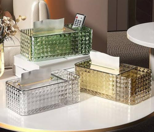 - تصميم فاخر: حامل مناديل زجاجي بنمط ماسي مع تأثير بصري ثلاثي الأبعاد، متوفر باللون الذهبي والشفاف