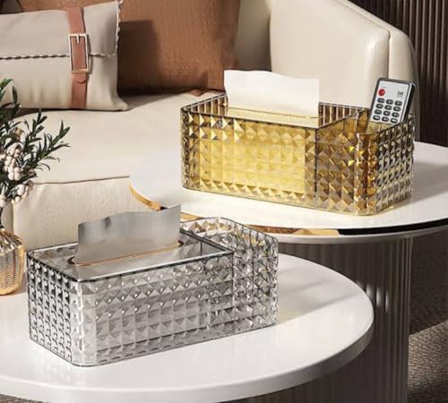 Generic - حامل مناديل كريستال فاخر، تصميم ماسي، لون ذهبي وشفاف، مع جهاز تحكم عن بعد، صندوق تخزين ديكور للمنزل والمكتب