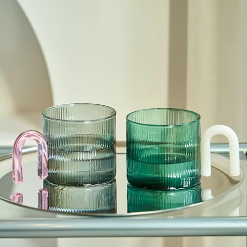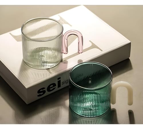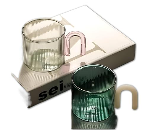 Generic - كوب من زجاج شفاف عالي الجودة بلمعان جذاب وانعكاسات ساحرة بمقبض فني للمشروبات الساخنة والباردة، من 2 قطعة