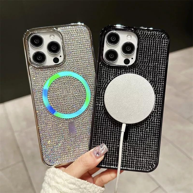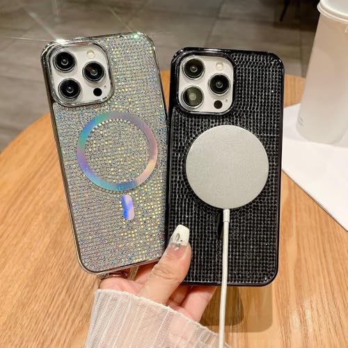 Generic - جراب حماية لامع بتصميم ماسي لموبايل آيفون 15 برو ماكس [متوافقة مع ماج سيف]، جراب ناعم ومضاد للصدمات للنساء والبنات، لون أسود