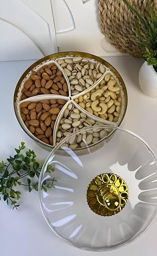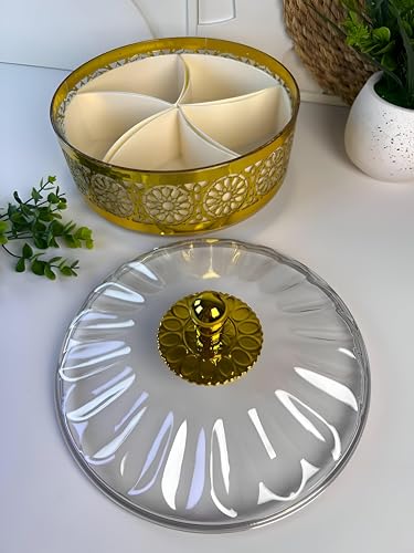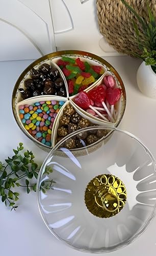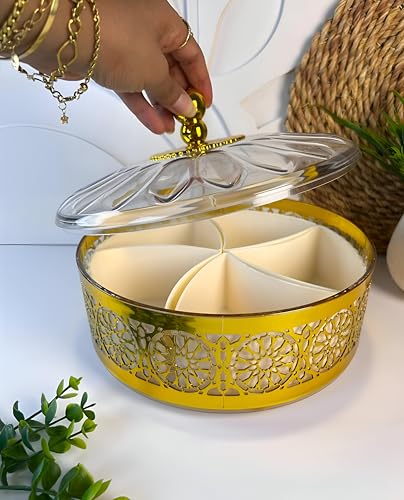 Generic - طبق حلوى مقسم فاخر - منظم بلاستيكي مزين باللون الذهبي للحلويات والياميش والمكياج، ديكور وعملي للاستخدام اليومي او المناسبات