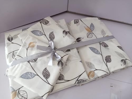 Generic - طقم غطاء لحاف فاخر، قطن عامريه، أبيض بنقش أوراق رمادي وبيج، مقاس 225×240 سم، مع خداديتين 50×70 سم، مزود بسوسته، مضاد للوبر