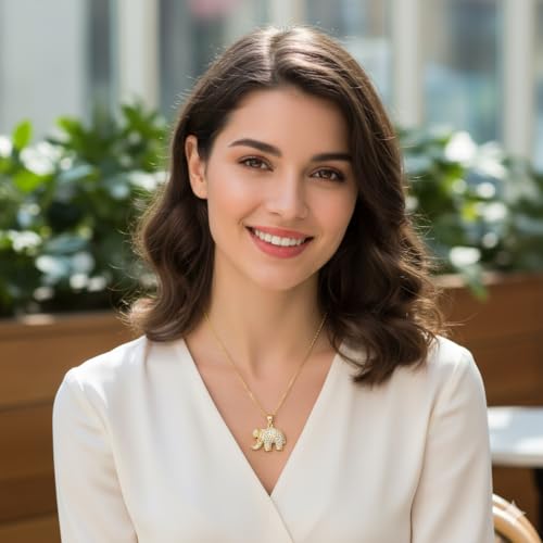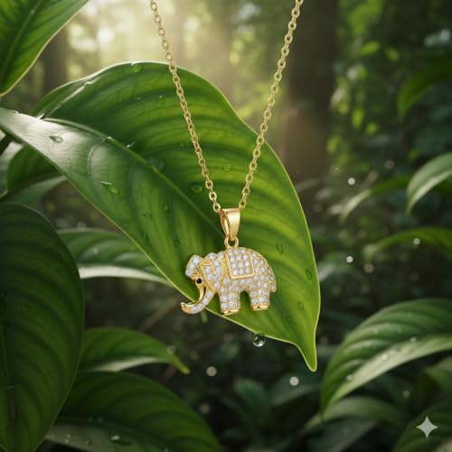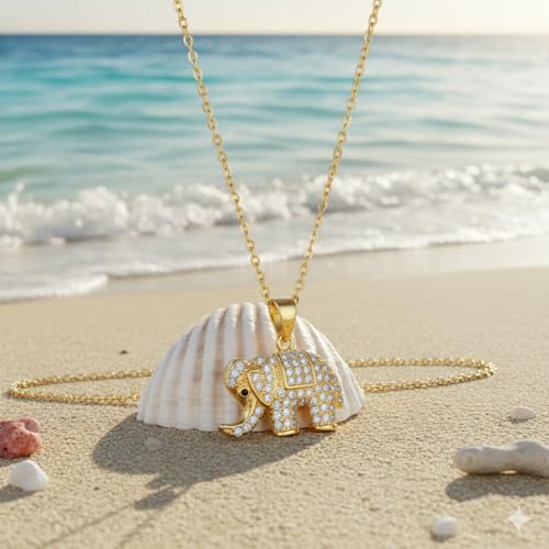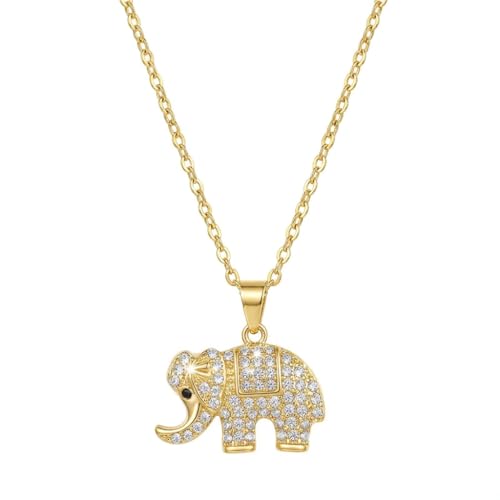 Generic - سلسلة الفيل الفاخرة مرصع بالكامل بالزركونيا المطلية بالذهب عيار 18 قيراطًا | قلادة الفيل للحظ السعيد والحكمة | مجوهرات هدايا أنيقة للنساء والفتيات | من الاستانلس ستيل المقاوم للصدأ