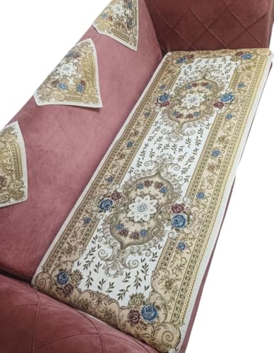 Generic - طقم مفارش جوبلان فاخر للانتريه، تصميم كلاسيكي مزخرف بالورود، لون أسود وذهبي مع تطريز أزرق ووردي
