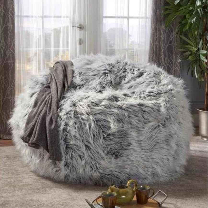 - تصميم فاخر: كرسي بين باج كبير جدًا من الفرو الصناعي باللون الرمادي الأنيق، مثالي لإضفاء الاسترخاء على أي مكان في أي غرفة.