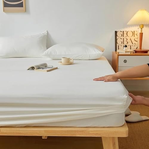 Generic - ملاءات فاخرة بحواف مطاطية من القطن الفاخر بلون أبيض مقاس 1 × 2 م بتصميم جيب عميق مناسبة للسراير ذات المنصة العصرية