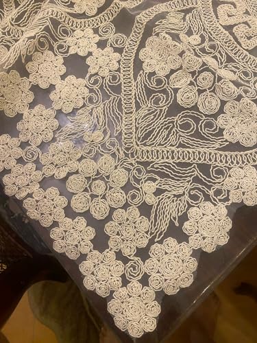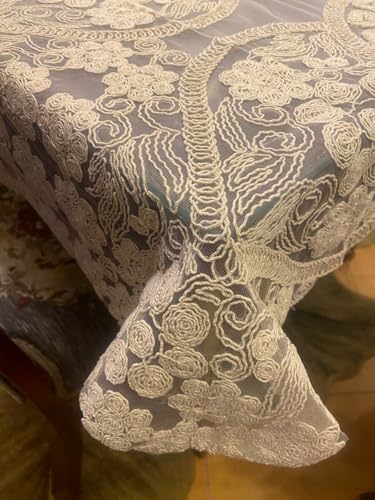 Generic - مفرش للمائده دانتيل فاخر بنقشة الورود، أبيض عاجي، تول شفاف مطرز، نسيج راقي _ حجم كبير مناسب لمائده 6 أو 8 كراسي _ مقاس 160 * 225 سم