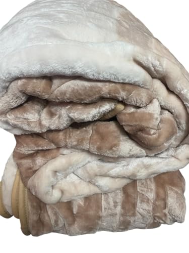 Generic - بطانية فرو فاخرة، ناعمة ودافئة، بتصميم مخطط بيج وبني_ عدد 2 بطانيه من نفس اللون مقاس 180 * 220 سم _ ملمس مريح يوفر نوم هايء _ فرو حفر مميز