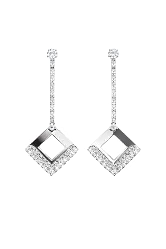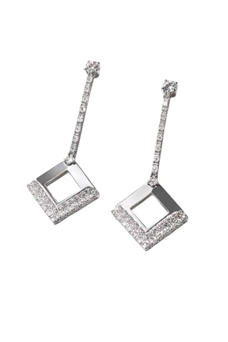 Generic - أقراط متدلية فاخرة بتصميم هندسي مرصعة بالكريستال، فضية اللون، للنساء