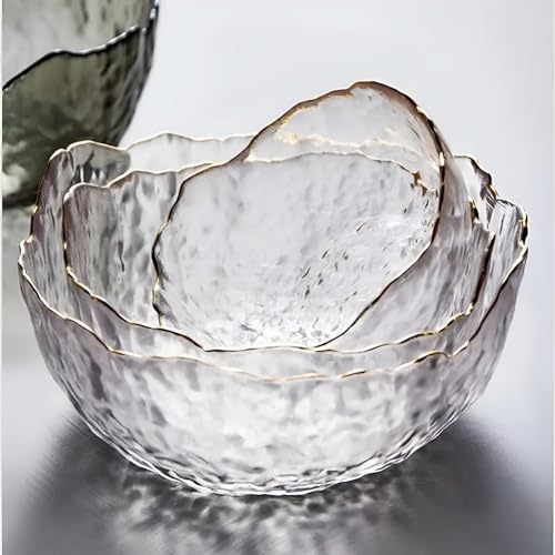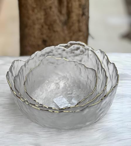 Generic - مجموعة اواني زجاجية فاخرة - ثلاثة اوعية زجاجية غير لامعة مصنوعة بشكل جميل مع حواف ذهبية مصممة لتعدد الاستخدامات، مثالية لتقديم الأطباق الشهية مع تعزيز أناقة تناول الطعام