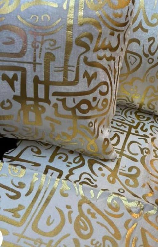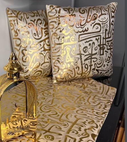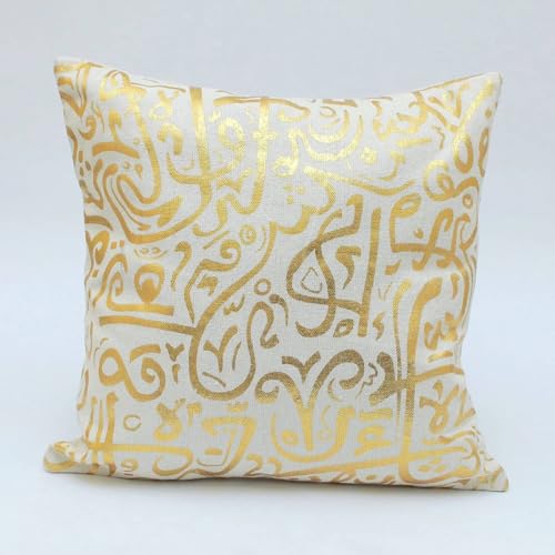Generic - كوشن ديكور بنقوش الخط العربي بلون ذهبي فاخر - غطاء وسادة فخم بتصاميم تراثية عصرية لتزيين الأرائك وغرف الاستقبال عدد 2 قطعة k