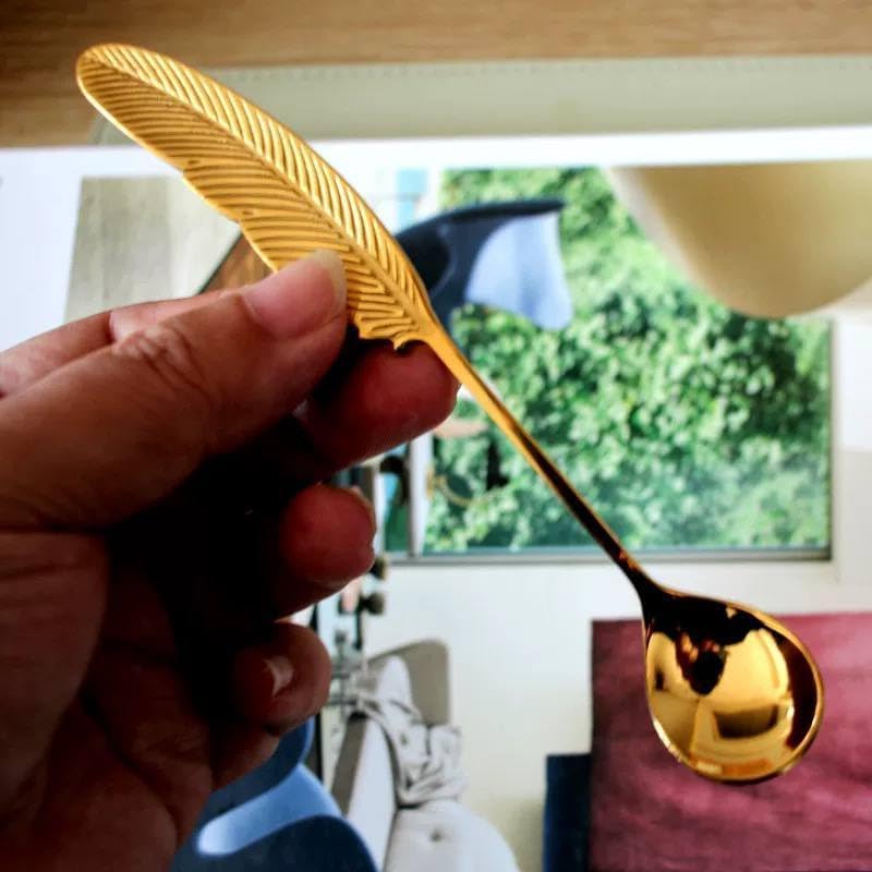 Generic - طقم ملاعق ريشة ذهبية فاخرة - 6 قطع ملاعق ستانلس ستيل للحلوى والشاي والقهوة (15 سم)
