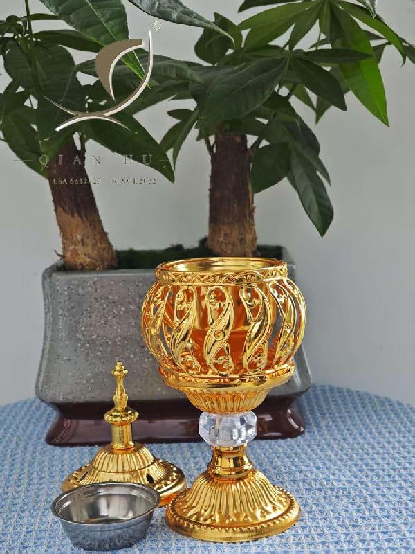 Generic - مبخرة ذهبية فاخرة مقاس كبير بقاعدة مرتفعة وتصميم ملكي - حامل بخار معدني أنيق لتزيين المنزل والمجالس ونشر الروائح العطرية بلمسة راقية