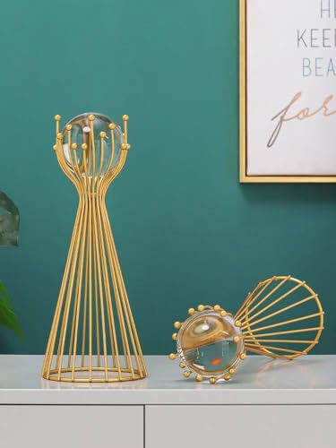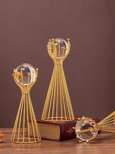 Generic - حامل بلورة ديكور كريستال معدني ذهبي فاخر، تصميم عصري، قاعدة مزخرفة بالكرات، مجموعة من قطعتين