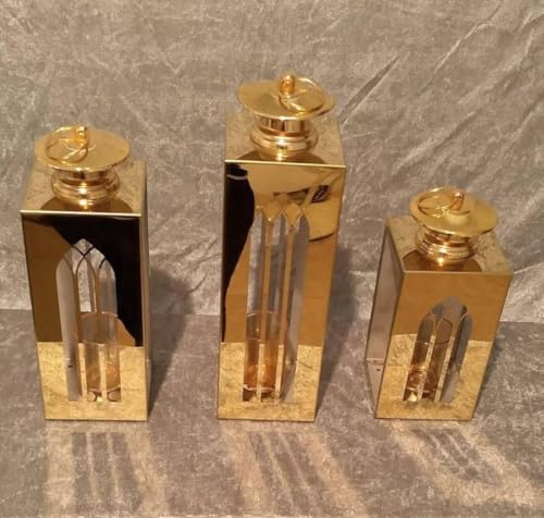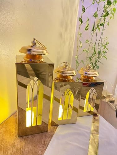 Generic - فوانيس معدنية ذهبية بنمط قوطي عتيق، حامل شموع لديكور المنزل 3 قطع 35×10، 30×10، 20×10 سم