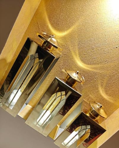 - مجموعة فاخرة: مجموعة مكونة من ثلاثة فوانيس ذهبية أنيقة بتصاميم هندسية مميزة.