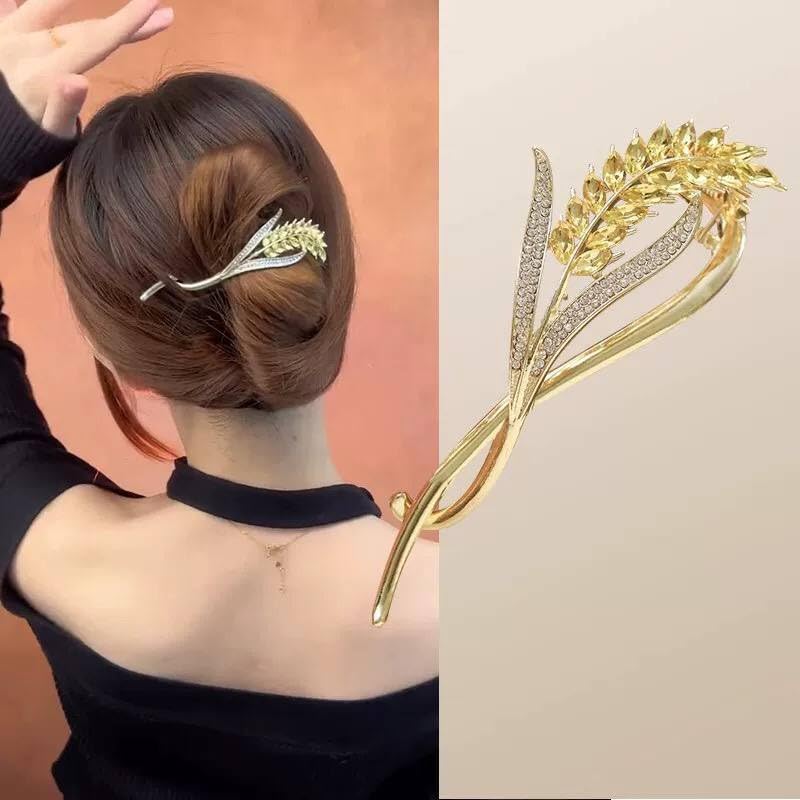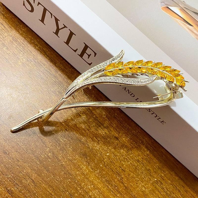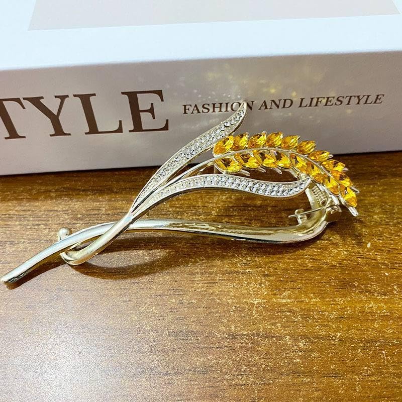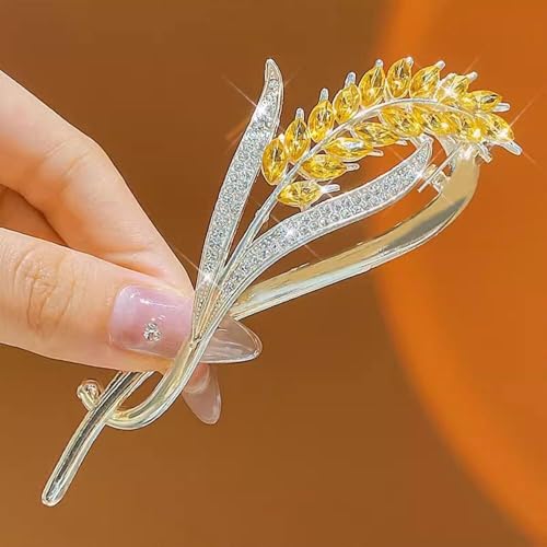 Generic - دبوس زينة فاخر مطلي بالذهب، بتصميم ورقة شجر مع كريستال أصفر وأبيض