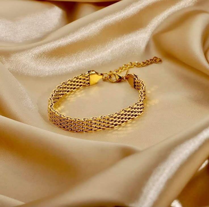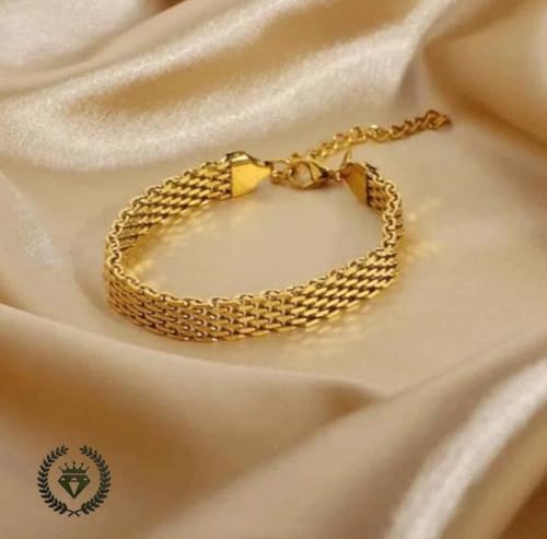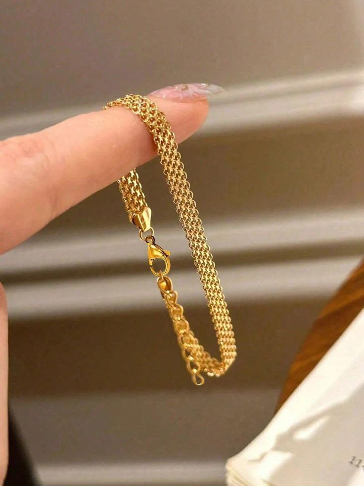 Generic - سوار سلسلة شبكي فاخر مطلي بالذهب، تصميم منسوج عريض، مشبك لوبستر