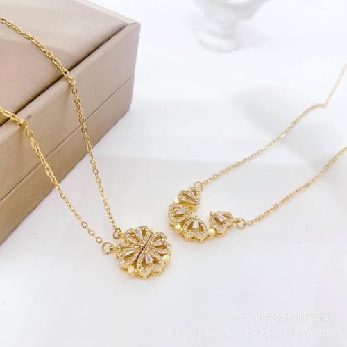 Generic - قلادة نسائية فاخرة مطلية بالذهب، تصميم زهرة كريستال براقة مع سلسلة أنيقة