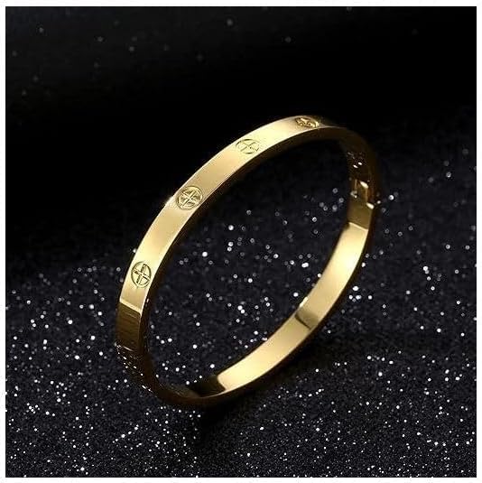 Generic - سوار حلقي فاخر من الستانلس ستيل مطلي بالذهب بتصميم برغي كلاسيكي، مجوهرات عصرية انيقة للنساء