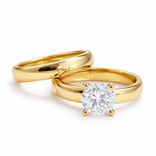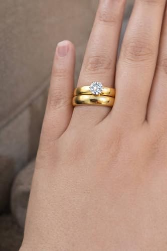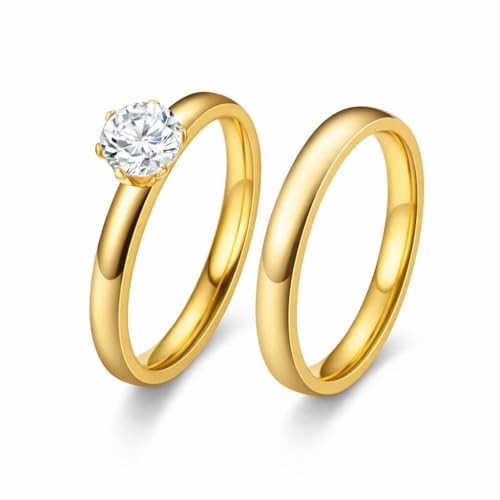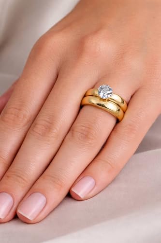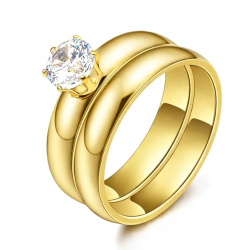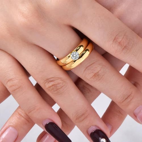 Generic - خواتم من الفولاذ المقاوم للصدأ المطلي بالذهب للنساء، خواتم عريضة مع كريستال دائري، مجوهرات أنيقة للنساء